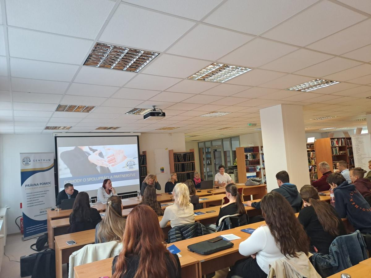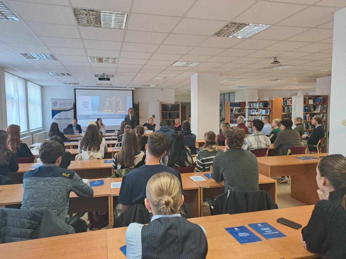Dňa 14. októbra 2025 sa na fakulte konalo stretnutie zástupcov Centra právnej pomoci so študentmi. Podujatie otvorila riaditeľka Centra právnej pomoci, JUDr. Anna Peťovská, PhD. Ďalší prítomní boli Ing. Silvia Vojsová - vedúca odboru stratégie a riadenia projektov, Mgr. Peter Danišik – vedúci kancelárie Nitra, Mgr. Kamila Brázdovičová – zástupkyňa vedúcej kancelárie Trnava a Mgr. Ľuba Boľvanská - metodička Centra právnej pomoci.