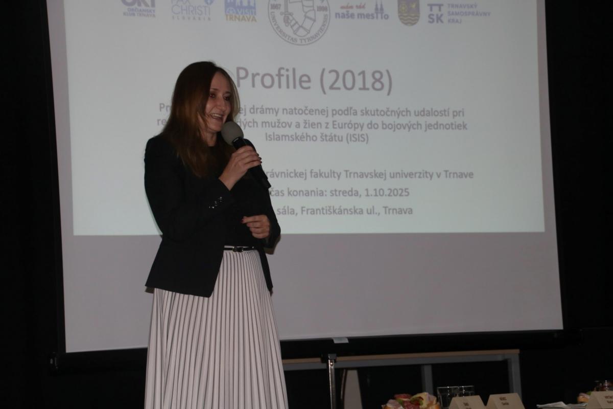 1. októbra 2025 oslávila Právnická fakulta Trnavskej univerzity v Trnave svoje 27. narodeniny. Oslava sa konala v rámci Dňa fakulty v Mariánskej sále, ktorá sa pri tejto príležitosti premenila na kinosálu. Po príhovore pani dekanky zabezpečil bývalý absolvent fakulty pre aktuálnych študentov a vyučujúcich premietanie filmu Profil. Príbeh inšpirovaný skutočnými udalosťami zachytáva aktivity britskej novinárky, ktorá sa pokúsila nalákať a odhaliť džihádistu ISIS robiaceho nábor prostredníctvom sociálnych médií. Na prvý pohľad jednoznačná téma odkrývala viacero rovín, okrem problematiky radikálneho islamu tiež ľahkú zneužiteľnosť sociálnych médií na vytvorenie falošných profilov, šírenie propagandy a nenávisti, ako aj emocionálnu rovinu náboru mladých žien z Európy do ISIS. Na film nadväzovala prednáška a celé podujatie vyvrcholilo diskusiou vyučujúcich z Katedry trestného práva a kriminológie, doc. E. Szabovej a dr. K. Vrtíkovej, a vyučujúcich z Ústavu pre právne otázky náboženskej slobody, prof. M. Šmida a prof. D. Němca, Diskusiu moderoval vedúci Katedry teórie práva a ústavného práva, doc. M. Káčer.